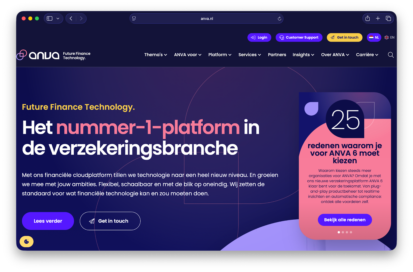 Anva is al decennialang een bekende naam in de Nederlandse verzekeringsmarkt en wordt breed gebruikt door verzekeraars, volmachten en intermediairs. Het platform biedt organisaties veel vrijheid om processen, schermen en producten naar eigen wens in te richten.